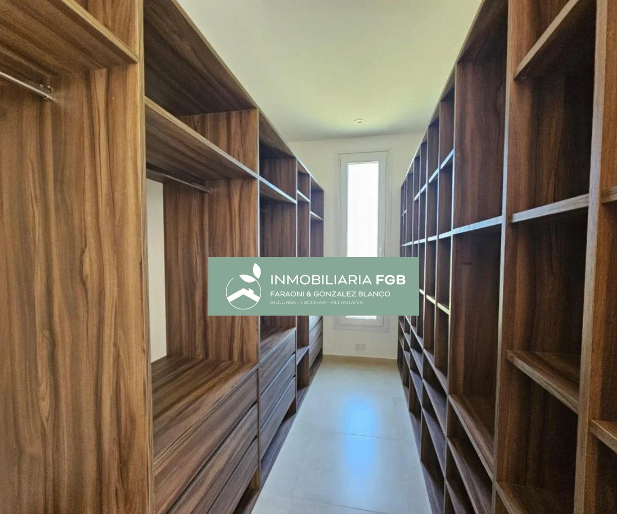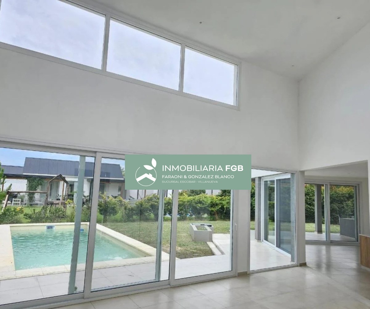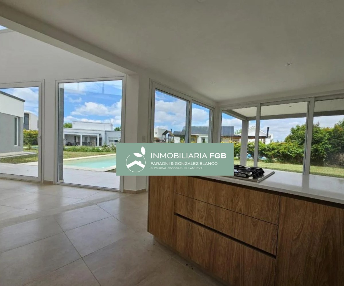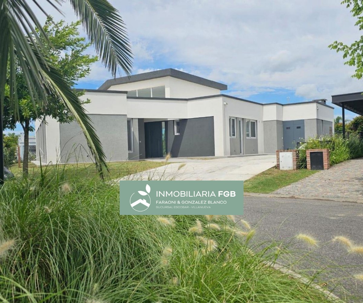 AMPLIA Y CONFORTABLE CASA MODERNA DE EXCELENTES TERMINACIONES. Excelente casa de estilo moderno desarrollada en 1 planta en el Barrio Golf de El Cantón, Escobar. Cuenta con 187m2 cubiertos, 23m2 semicubiertos emplazada en un lote de 826m2 con orientación SO de puro sol a la tarde. La casa combina una excelente calidad constructiva con una gran distribución, aprovechando todos sus espacios con ambientes muy amplios de gran luminosidad. La casa se distribuye de la siguiente manera: - Hall de entrada con puerta de chapa negra - Living comedor en doble altura - Cocina separada con comedor y despensa independiente - Toilette - Master suite con baño completo compartimentado y vestidor. - 3 dormitorios con un baño completo - Espacio de home office en hall de distribución - Lavadero con entrada de servicio - Galería con amplia parrilla con barra - Pileta con playa húmeda - Baño de pileta - Jardín - Estacionamiento descubierto para varios autos Detalles Constructivos: Calidad premium Aberturas PVC DVH Calefacción por piso radiante eléctrica sectorizada en todos sus ambientes. Cocina con mobiliario completo con horno eléctrico y cocina a gas Preinstalación de AC en todos los ambientes. Interior y frente de placares en todos los ambientes Contactanos para visitar esta magnífica casa! Estamos para ayudarte a encontrar lo que buscás. Mail: info@inmobiliariafgb.com.ar IG: @inmobiliaria_FGB ----------------------------------------------------------- EL CANTÓN está ubicado en la localidad de Maschwitz en el partido de Escobar a la altura del Km. 44 de la panamericana. El barrio cuenta con un excelente acceso desde un viaducto de la panamericana hasta el acceso principal al barrio llamado Avenida de los Lagos y cuenta con otro ingreso en el otro extremo cercano a Escobar. El Cantón está dividido en 4 Barrios (Puerto, Islas, Golf, Norte) con una vía de acceso rápido que vincula los 4 barrios. La superficie promedio de los lotes es de 800m2. Se destaca la presencia de lagunas siendo el 65% de los lotes con espejos de agua. El barrio cuenta con todos los servicios, cada barrio tiene su propio Club House. Amenities: - Club de Golf de 18 hoyos - Club deportivo - Canchas de tenis - Canchas de voley - Canchas de futbol - Pileta - Plaza de juegos para niños El Cantón tiene un total de 2.335 lotes: - Barrio Norte: 938 lotes - Barrio Islas: 553 lotes - Barrio Golf: 463 lotes *Las descripciones arquitectónicas, valores de expensas, impuestos o servicios, fotos y medidas de las propiedades son aproximados. Los datos fueron proporcionados por el propietario y pueden no estar actualizados a la hora de la visualización de este aviso por lo cual pueden arrojar inexactitudes o discordancias con las que surjan de los las facturas, títulos o planos legales del inmueble. Se pondrá a disposición del interesado la documentación necesaria a fin de realizar las verificaciones respectivas previamente a la realización de cualquier operación, requiriendo por sí o sus profesionales la documentación que corresponda.* *La venta de este inmueble esta sujeta a la tramitación del Código de Transferencia de Inmuebles (COTI) de conformidad con la normativa vigente (res AFIP 2371/08, 2439 y ccs) por parte del propietario.*