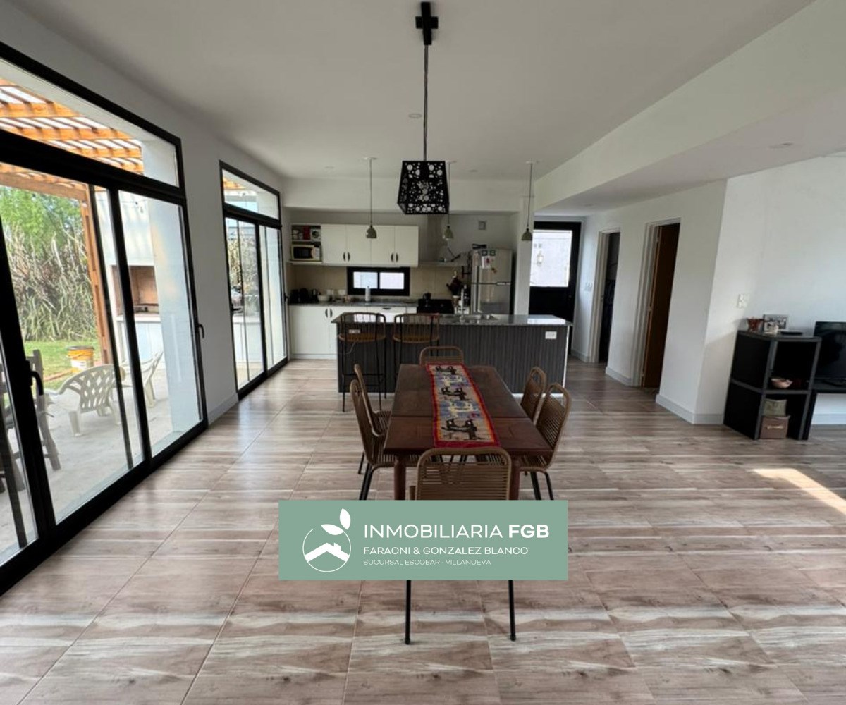 CASA MODERNA EN UNA PLANTA EN BARRIO NORTE, EL CANTÓN. IMPLANTADA EN UN LOTE DE PURO SOL AL NORTE PERIMETRAL. La casa combina una gran distribución, aprovechando todos sus espacios con ambientes muy amplios de gran luminosidad. - Hall de recepción muy amplio - Living comedor apaisado con vistas al jardín y al frente con hogar y grandes ventanales - Cocina comedor integrada con muebles completos con isla - Toilette - Lavadero en L muy amplio con sector de depósito / planchado / despensa - Escritorio o habitación de huéspedes muy amplio - Master suite con baño y vestidor - 2 habitaciones, de las cuales 1 posee vestidor - 1 Baño completo - Galería con amplia parrilla con bacha - Espacio descubierto para varios autos. - Jardín con gran arboleda Detalles Constructivos: -Aberturas DVH negras - Paredes exteriores doble muro de 30cm de espesor -Amoblamientos completos. - Cortinas - Luminarias - Acondicionadores de aire CONTACTANOS! IG: @inmobiliaria_FGB IFG0337 *Las descripciones arquitectónicas, valores de expensas, impuestos o servicios, fotos y medidas de las propiedades son aproximados. Los datos fueron proporcionados por el propietario y pueden no estar actualizados a la hora de la visualización de este aviso por lo cual pueden arrojar inexactitudes o discordancias con las que surjan de los las facturas, títulos o planos legales del inmueble. Se pondrá a disposición del interesado la documentación necesaria a fin de realizar las verificaciones respectivas previamente a la realización de cualquier operación, requiriendo por sí o sus profesionales la documentación que corresponda.* *La venta de este inmueble esta sujeta a la tramitación del Código de Transferencia de Inmuebles (COTI) de conformidad con la normativa vigente (res AFIP 2371/08, 2439 y ccs) por parte del propietario.*