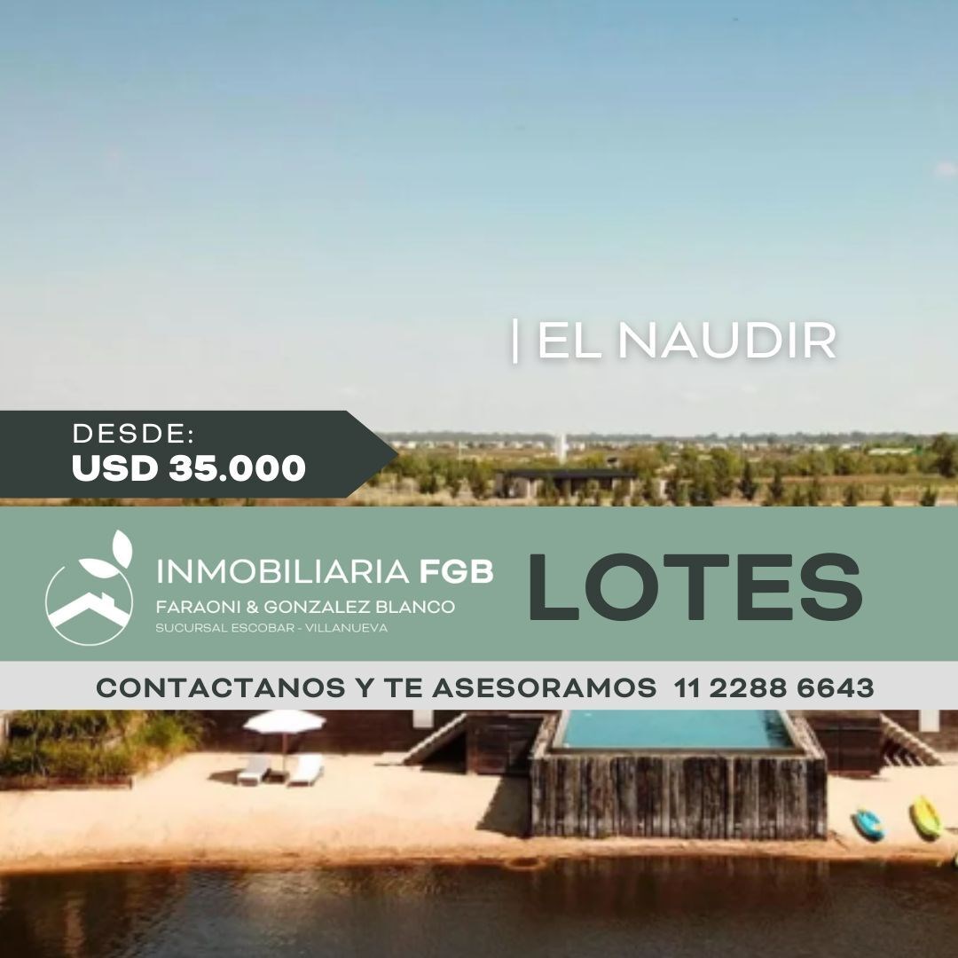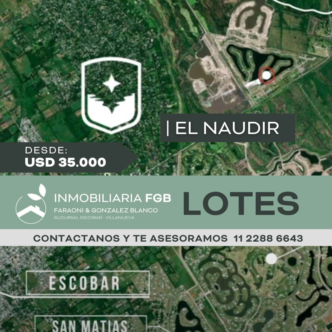 En Inmobiliaria FGB, tenemos gran variedad de lotes en el barrio El Naudir, Escobar. Con precios a partir de 35.000 USD y con opciones de financiación. Disfrutá de la tranquilidad y la belleza natural que ofrece El Naudir. ¡No dejes pasar esta oportunidad! Contáctanos! IG: @inmobiliaria_FGB El NAUDIR propone un estilo de vida náutico para disfrutar en familia y con amigos. Por ello su propuesta es integral y cuenta con todo lo necesario para llevar una vida familiar, social y exclusiva de manera plena. Con dos entradas: una principal y una de servicios. EL NAUDIR cuenta con un espacioso SUM, un Club House de más de 500 m2 con un restaurante de 240 m2, una amplia recepción, living, terraza, una piscina con orientación a la laguna central del barrio, una piscina cubierta, gimnasio, sauna y sala de masajes y una zona de deportes con 3 canchas de tenis y una cancha para jugar al futbol. Asimismo un área de juegos para los más chicos, un área de servicios y un sector comercial. Además cuenta con un área náutica que contempla un puerto con amarras, lo que lo destaca y diferencia de los desarrollos de la zona y habilita a sus habitantes a practicar diversas actividades tanto en el agua de río como en los espejos de agua interna.